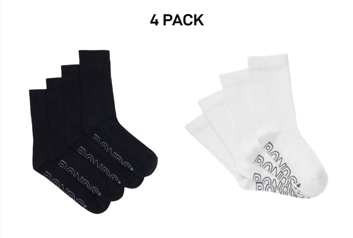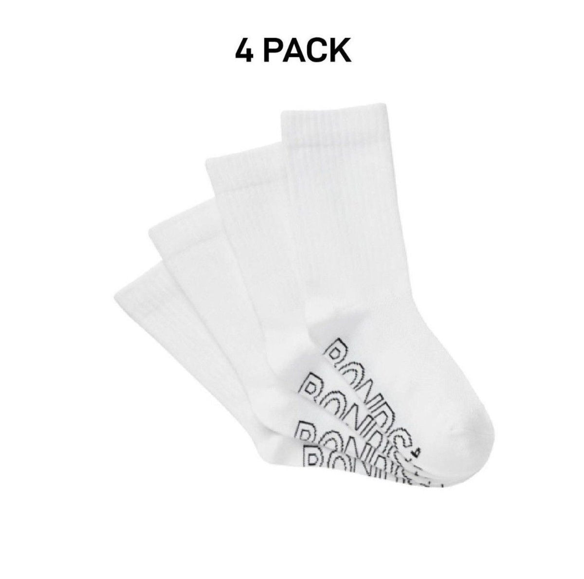 Bonds Kids Logo Light Crew Sock Soft Cotton Mesh Cooling 4 Pack RXVJ4N