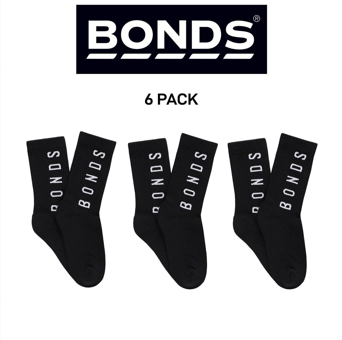 Bonds Womens Originals Crew Socks Cushioned Foot Soft Cotton 6 Pack LYEQ2N