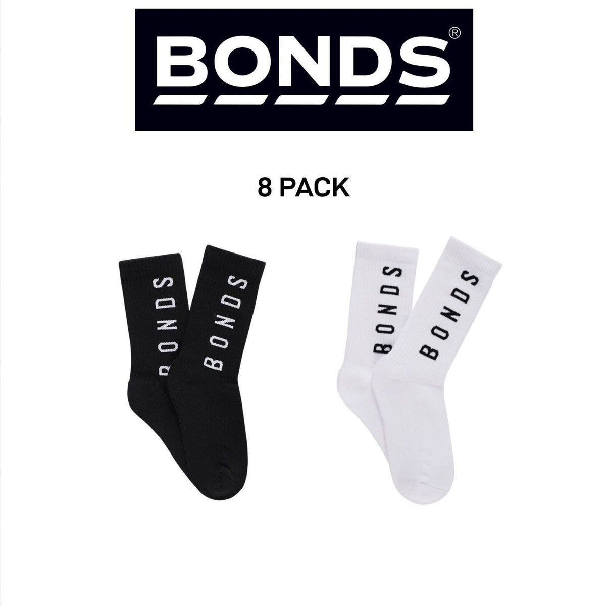 Bonds Womens Originals Crew Socks Cushioned Foot Soft Cotton 8 Pack LYEQ2N