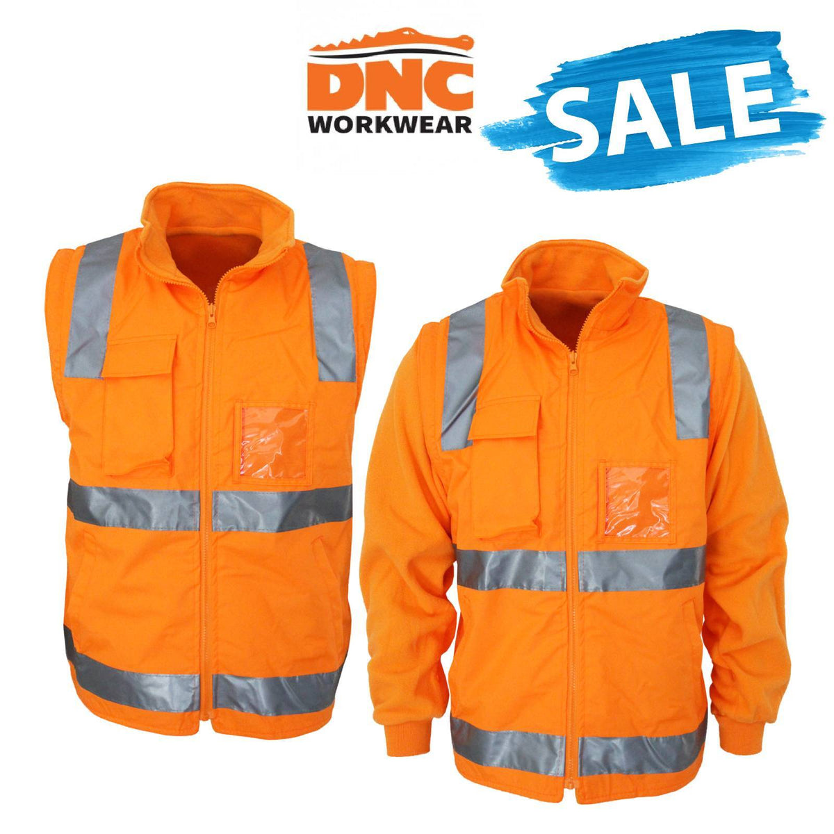 SALE DNC Mens HiVis Waterproof Reversible VIC Reflective Zip Off Rail Vest 3969