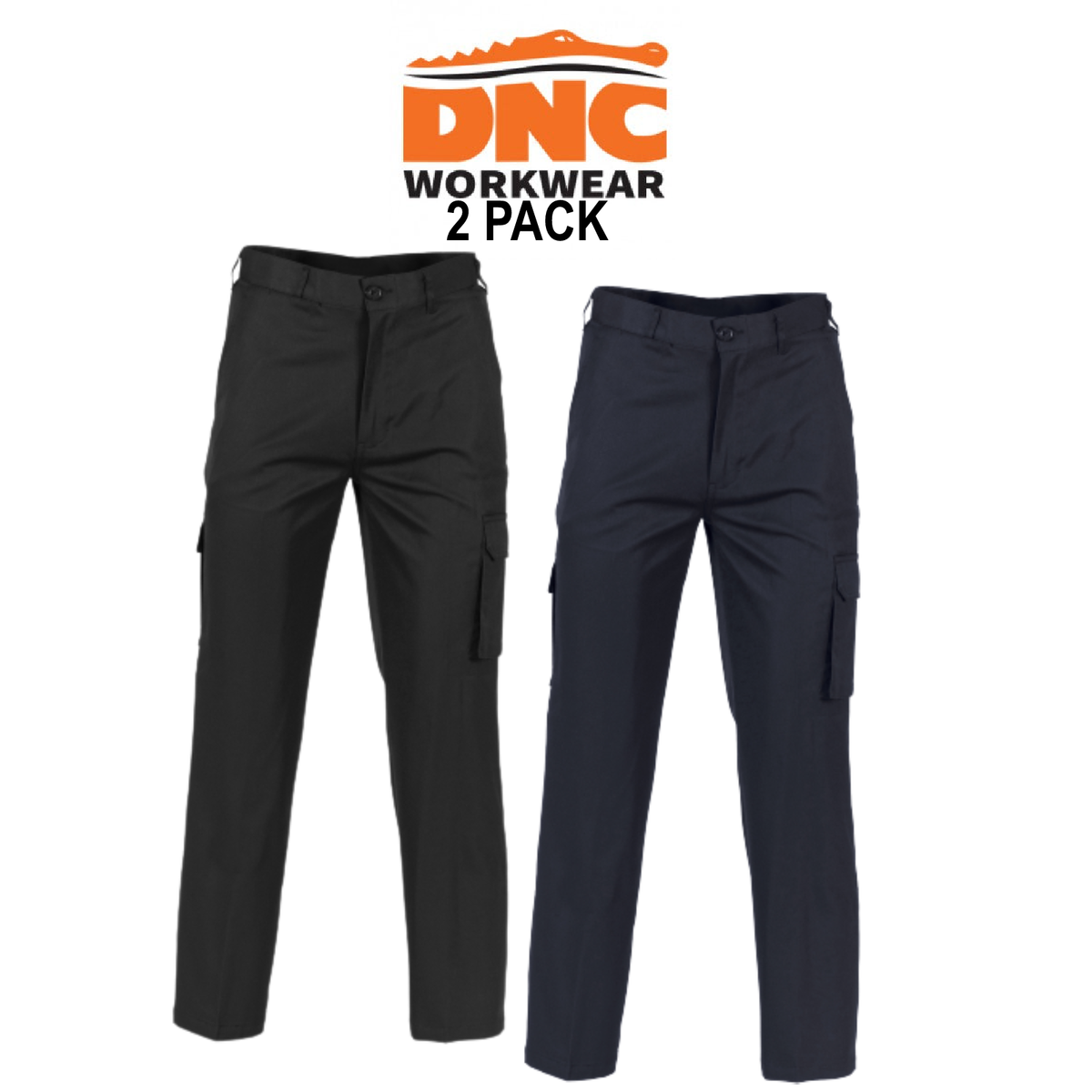 DNC Workwear Mens 2 Pack Permanent Press Cargo Pants Comfortable Work Tough 4504