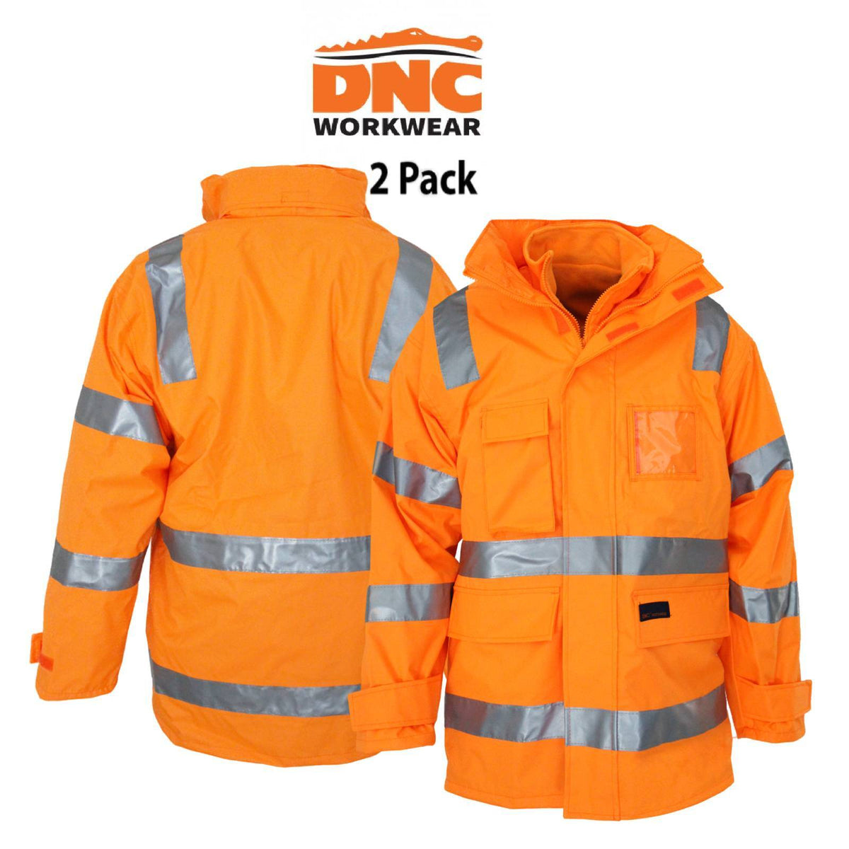 DNC Mens 2 Pack HiVis 6 in 1 VIC Rail Reversible Waterproof Rain Jacket 3970