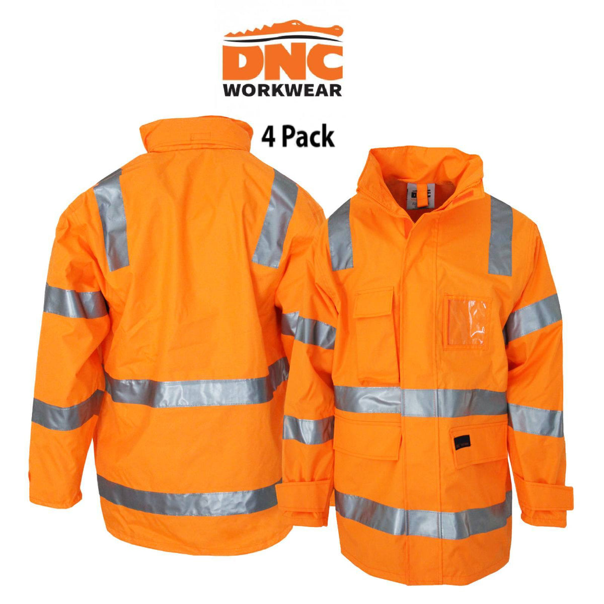 DNC Mens 4 Pack HiVis VIC Adjustable Hooded Rail Rain Safety Work Jacket 3968