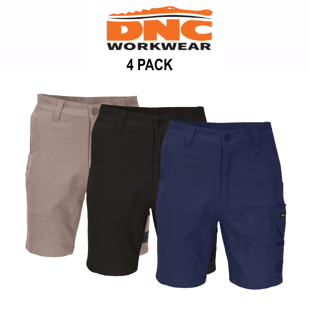 DNC Workwear 4 Pack SlimFlex Tradie Cargo Shorts Summer Comfort Short Work 3373