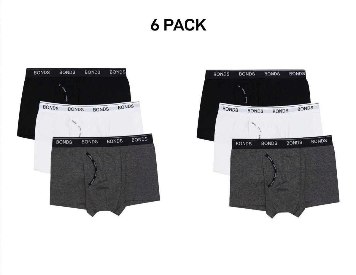 Bonds Mens Guyfront Trunk Stretchy Cotton Seam free Sides Elastic 6 Pack MZ963A