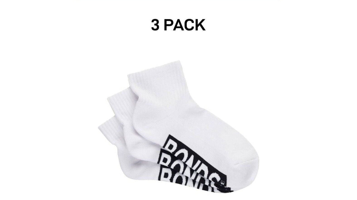 Bonds Womens Logo Cushioned Quarter Crew Comfy Cushioning Socks 3 Pack LXPP3N