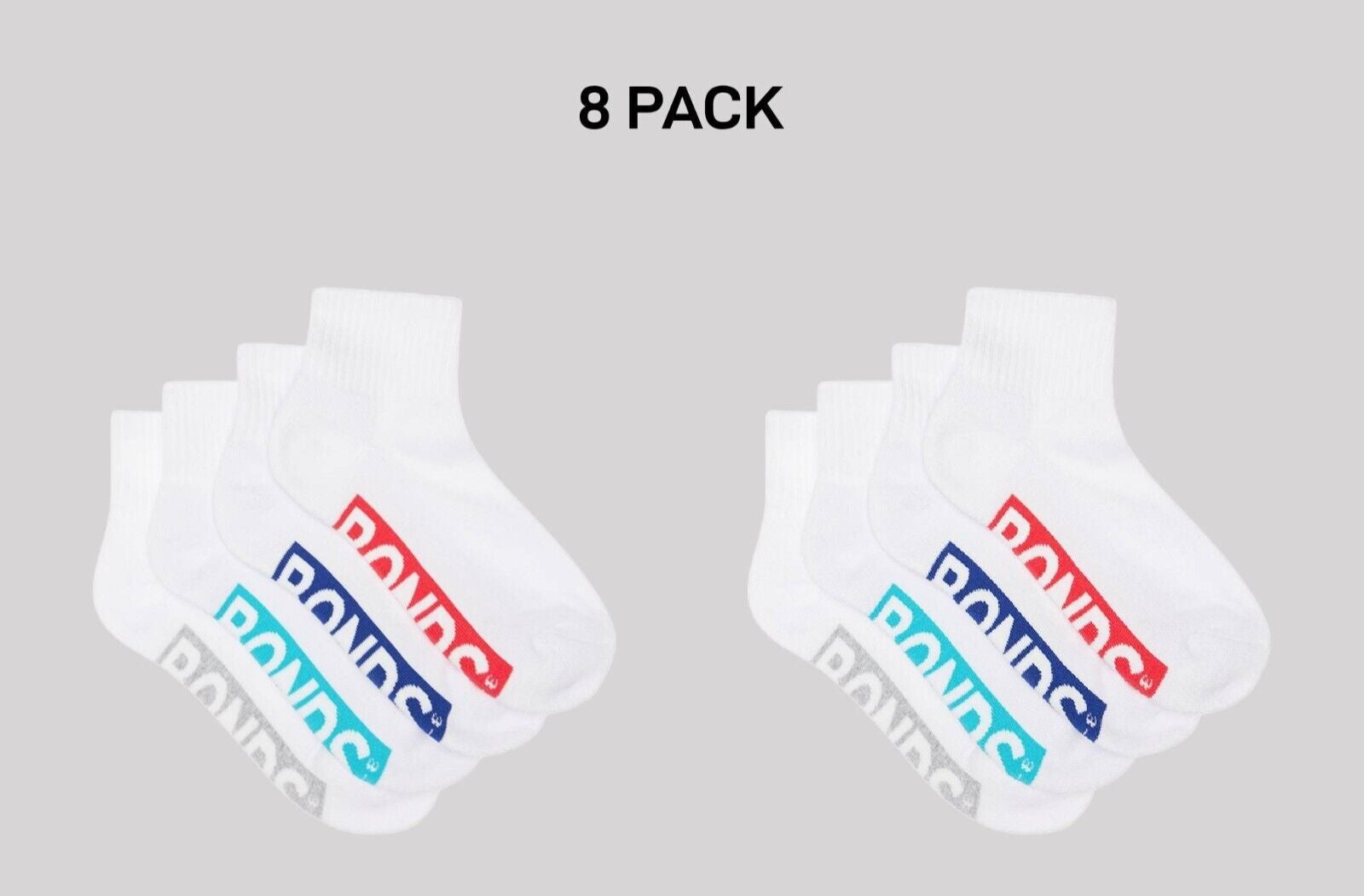 Bonds Kids Logo Light Quarter Crew Socks Comfy Mesh Cooling Zones 8 Pack RXU64W