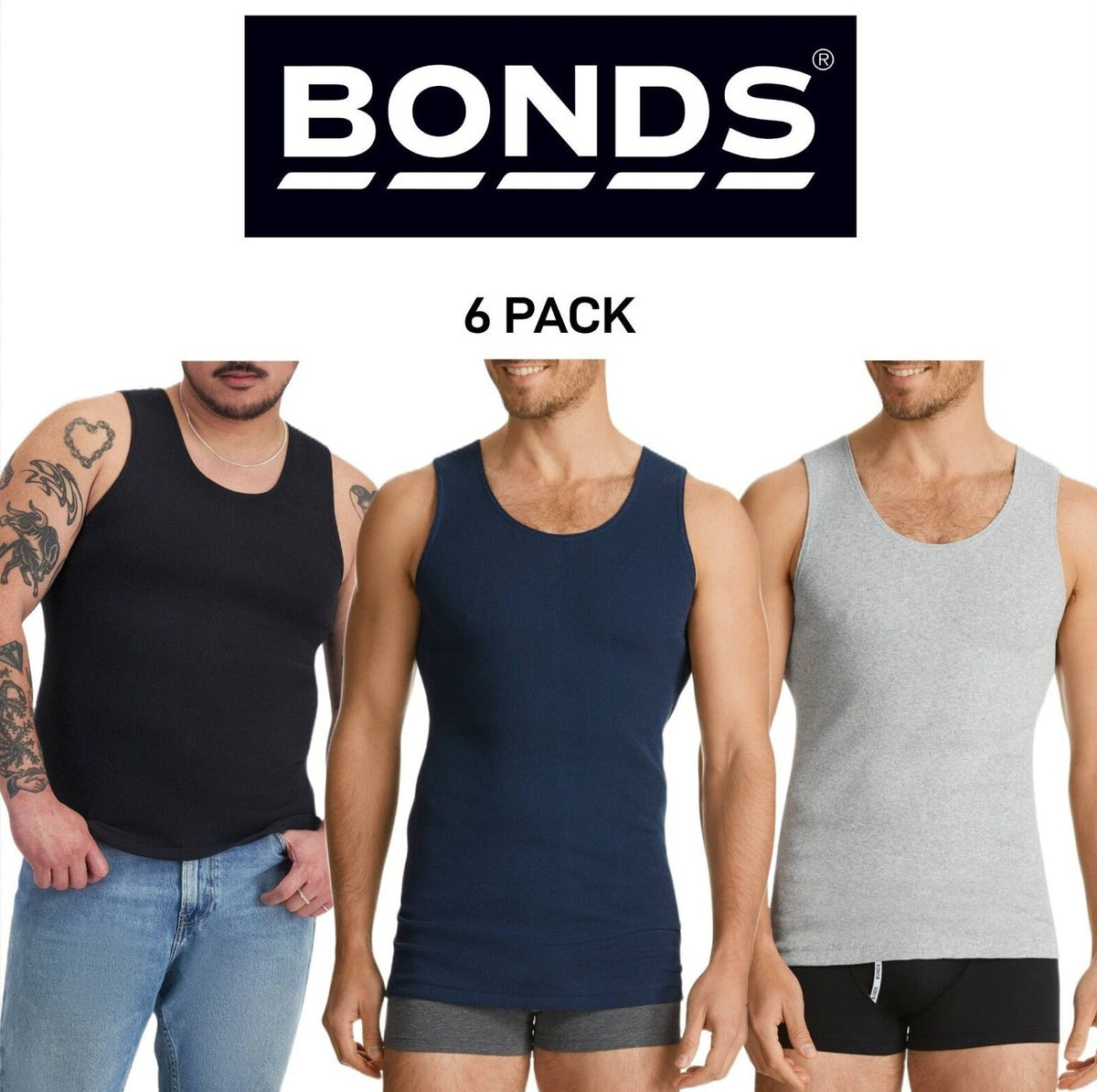 Bonds Mens Chesty Singlets Cotton Side Seamfree Comfortable Fit 6 Pack M757O