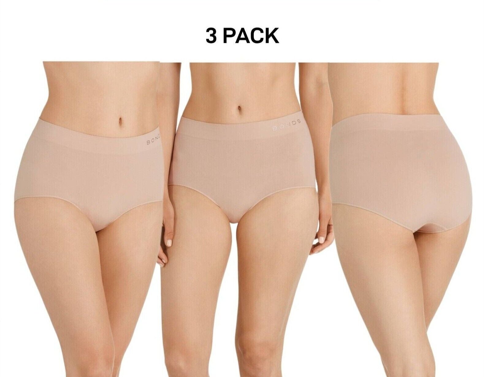 Bonds Womens Full Brief Seamless Comfortable Branded Waistband 3 Pack WWGAA