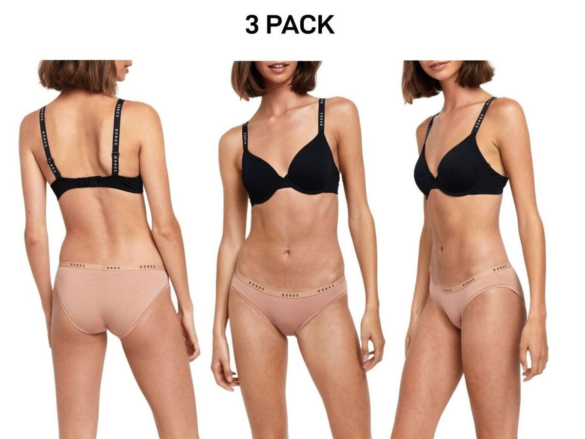 Bonds Womens Original Bikini Plain Breathable Stretchy Waist 3 Pack WVGMA