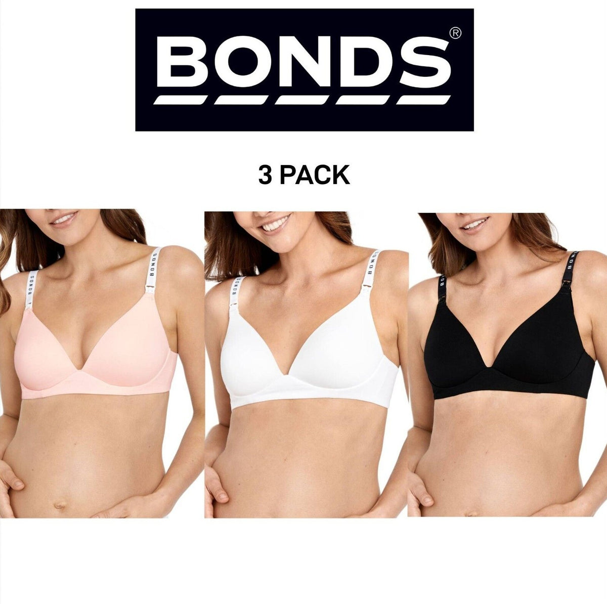 Bonds Womens Original Maternity Wirefree Contour Bra Comfy Coverage 3 Pack YXJ4Y